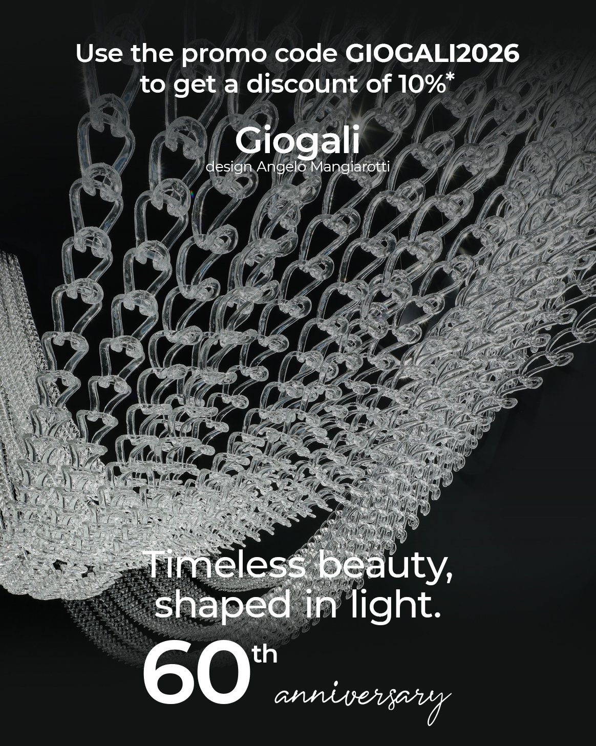 Giogali is a collection of glass lamps born from a simple yet revolutionary design concept: a single modular crystal element, the hook, capable of creating endless lighting arrangements. Designed in 1967 by Angelo Mangiarotti for Vistosi, the collection is one of the most recognisable icons of Italian design, offering a contemporary reinterpretation of the Venetian chandelier tradition.
